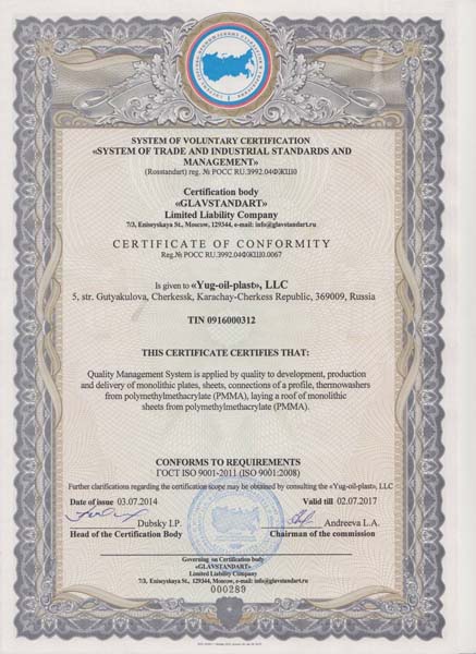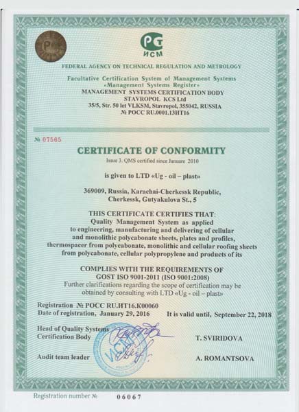 • Лист имеет гарантию от пожелтения, потери светопроводимости и устойчивости к граду